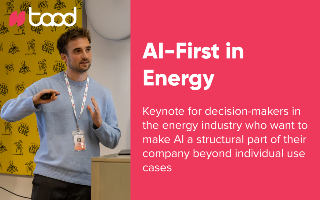 With the presentation “AI-First in Energy: How artificial intelligence restructures processes and entire business models” at E‑world 2026, Sven Buchholz from taod Consulting will give an outlook on how AI is fundamentally changing the energy industry.