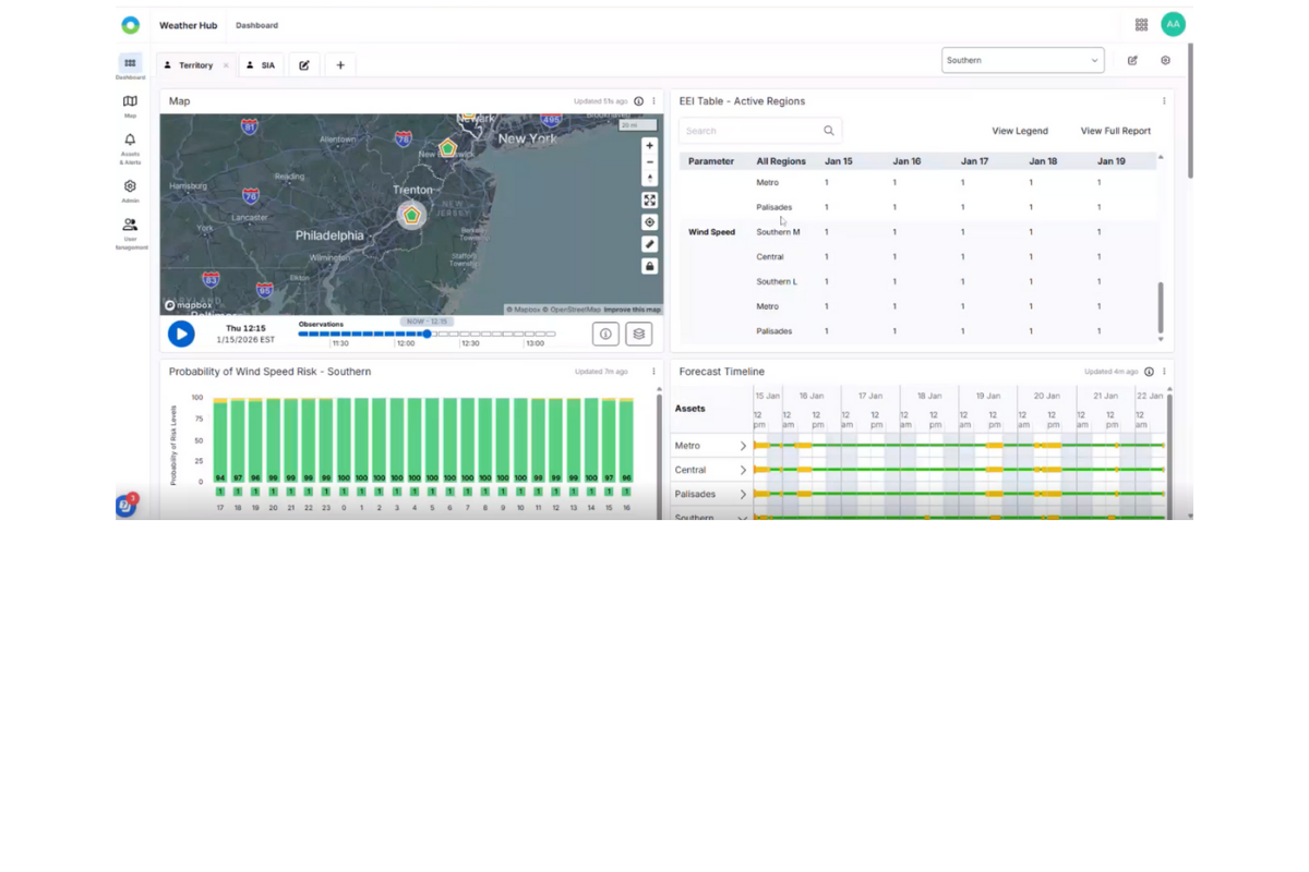 DTN Weather Hub for Utilities supports renewable operations teams by translating complex weather data into actionable insight at the asset level. Hyperlocal, probabilistic forecasts are aligned to individual turbines, solar arrays, substations, and work locations, helping teams understand not only what weather is coming, but how likely it is to impact operations and when thresholds may be exceeded.