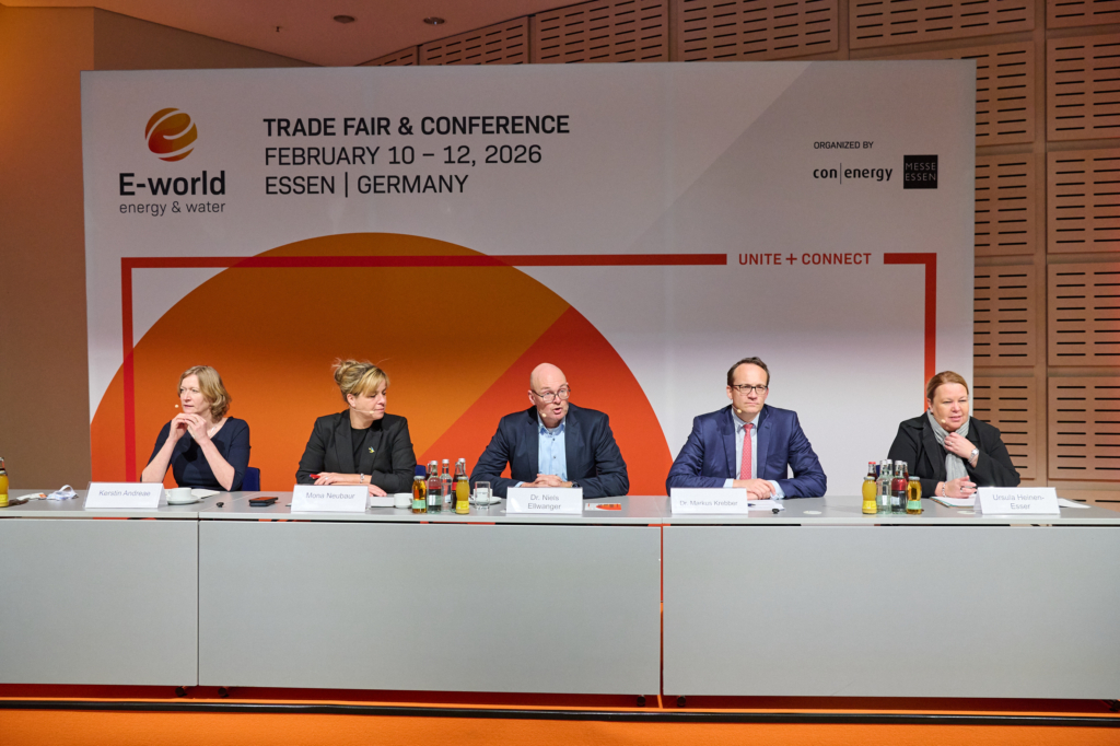 Zur Auftaktpressekonferenz der E‑world 2026 am ersten Messetag teilten diese Gäste ihre Einschätzungen und Erwartungen an die E‑world und an das Energiejahr 2026: