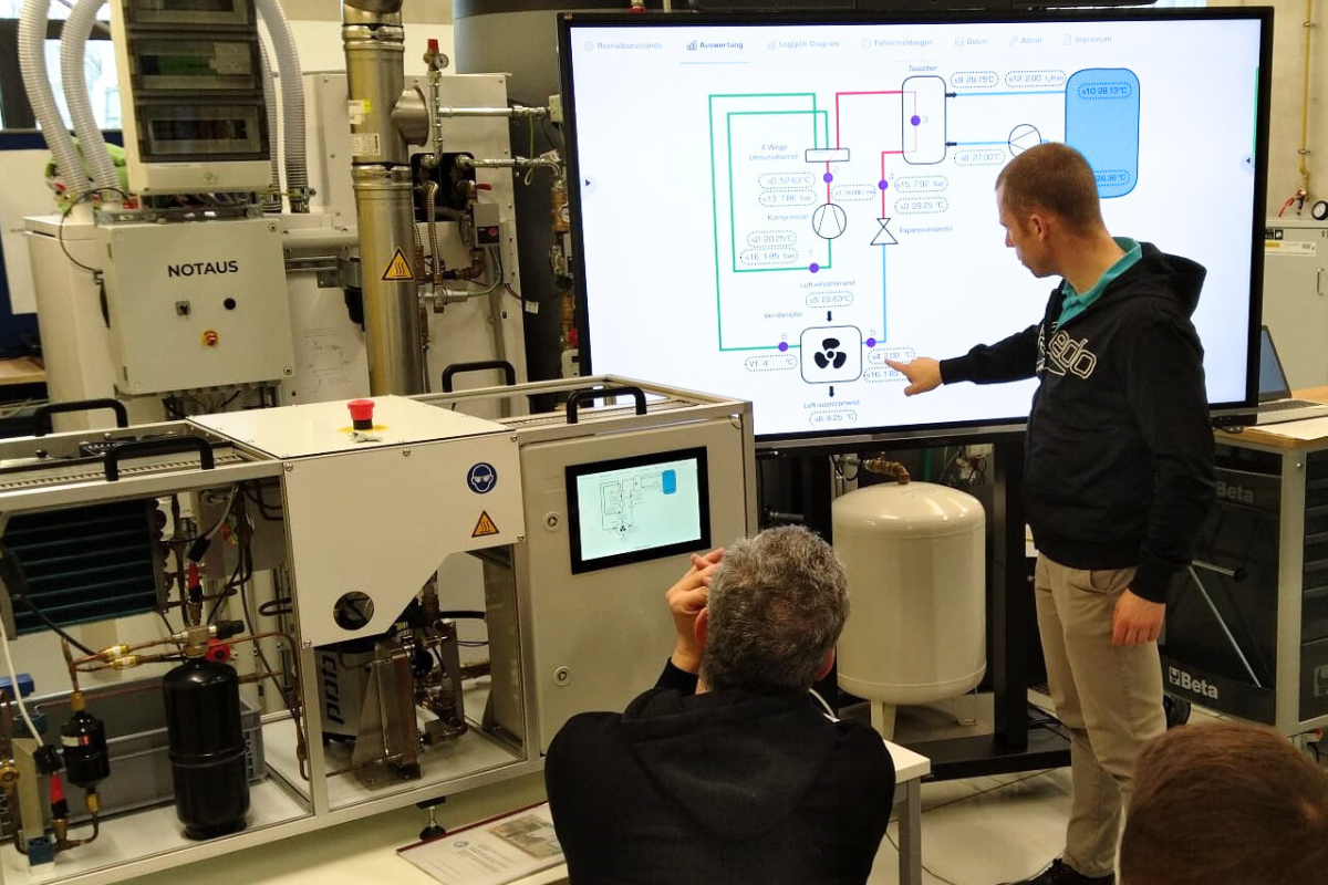 Theorie praktisch erlebbar machen: Mit der heatXpump vorfolgen Studierende reale Wärmepumpen- und Kältekreisprozesse und analysieren Messdaten in Echtzeit. Ein interaktiver Demonstrator für Professoren von technischen Hochschulen.
