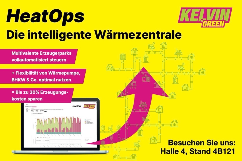 Über Kelvin Green: Die Kelvin Green GmbH (gegründet 2023, Berlin) ist ein führender Anbieter für die grüne Wärmenetztransformation von der Planung bis zum Betrieb. Kelvin Green unterstützt Stadtwerke und Wärmeversorger bei der Transformation, dem digitalen Betrieb und der Optimierung von Wärmenetzen – mit Beratung und Software. Über 40 Wärmenetzbetreiber und Stadtwerke setzen die Kelvin-Green-Lösungen bereits erfolgreich ein. Zu den Lösungen zählen HeatMap (Bestands-/Potenzialanalyse), HeatSim (Simulation von Transformations- und Dekarbonisierungspfaden) und HeatOps (intelligente, automatisierte Betriebssteuerung). Mehr: https://kelvin.green