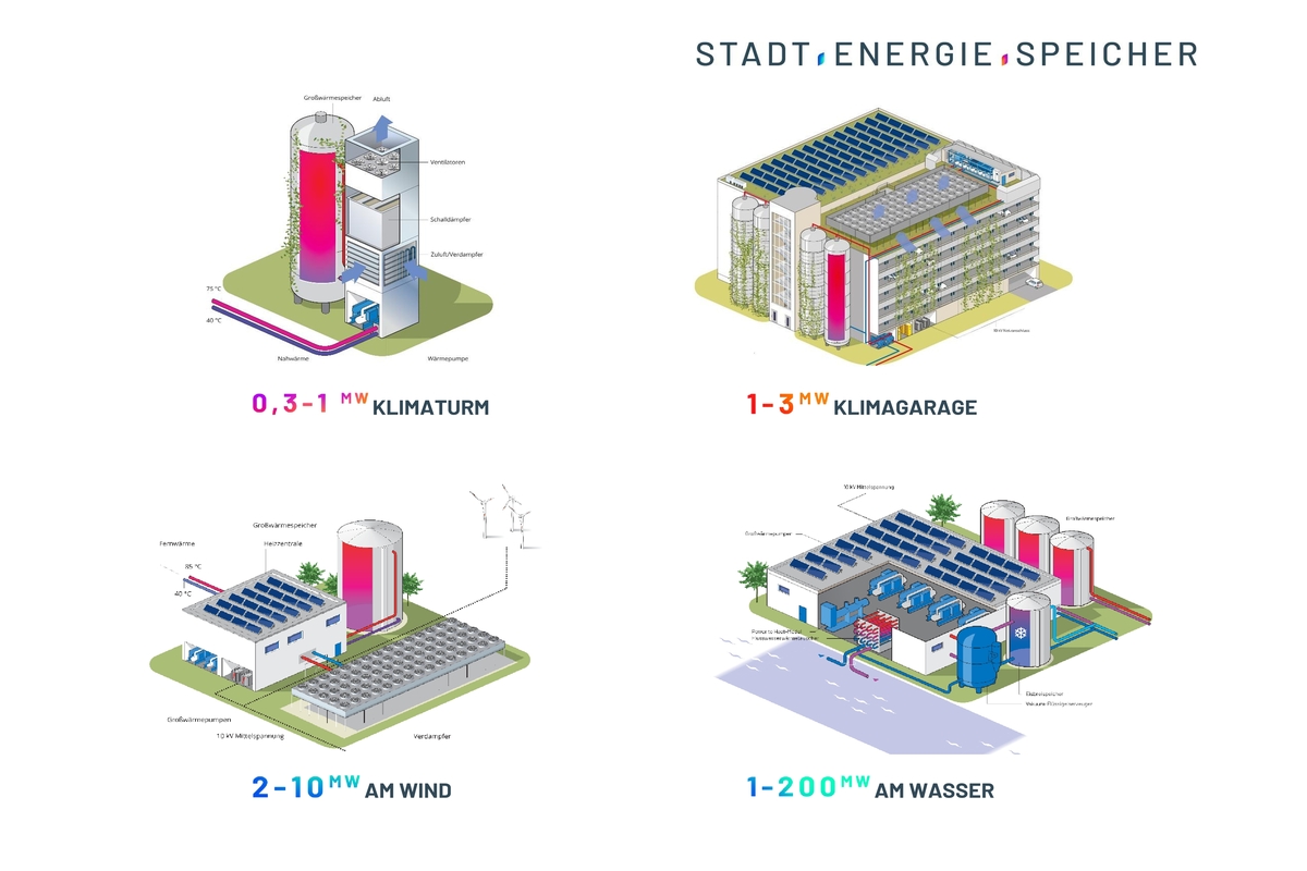 Entscheidend ist, die Wärmeproduktion strombasierter Wärmeerzeuger wie Großwärmepumpen gezielt an die Einspeiseprofile von Wind und Sonne anzupassen. Durch den Einsatz von Großwärmespeichern sowie intelligenter Prognosesysteme lassen sich so system- und netzdienliche Lastverschiebungen vornehmen. Genau hier setzt Stadt.Energie.Speicher an.